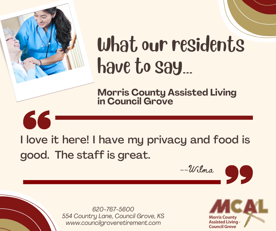 Morris County Assisted Living is nestled in the serene heart of the Flint Hills, offering a peaceful and welcoming environment for all our residents. Enjoy a leisurely day indoors, or take a revitalizing stroll through our charming neighborhood. As the day winds down, relax and unwind while watching the breathtaking sunsets from our peaceful gazebo.